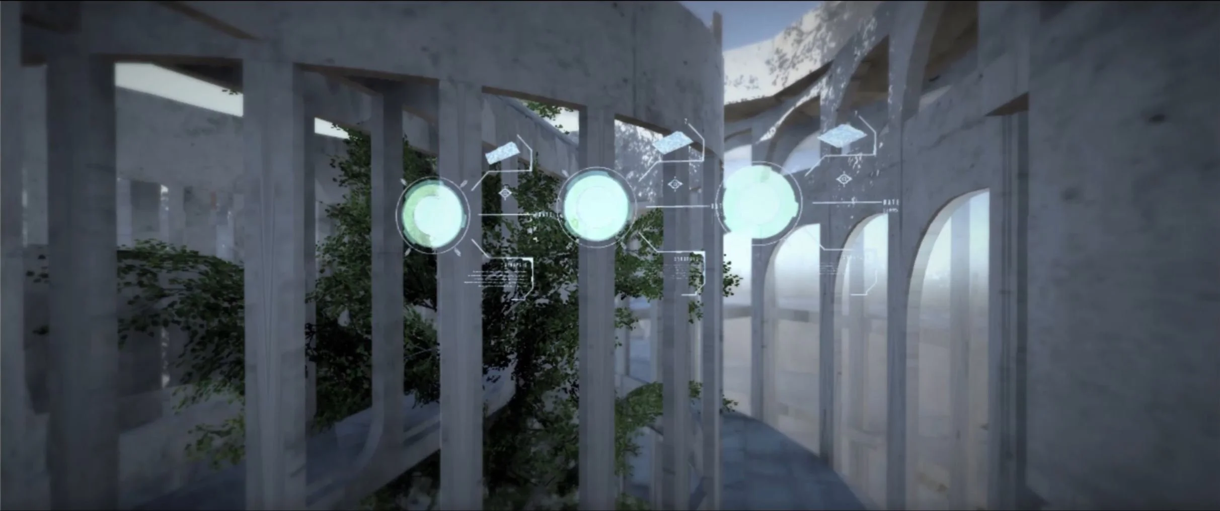The underground spaces are designed following principles of landscaping, the history of French, English and Mexican gardens exploring arrangements that combine central nodes of activity and smaller more intricate connecting routes converting the library into an architectural landscape of knowledge. Conceptually, the architectural experience of the building is structured around the concept of deja-vu, created by the duplication of experiences, essentially making an architectural stereoscopy with similar experiences.
